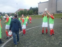 In feucht fröhlicher Runde wurde in der 3. Halbzeit gemeinsam mit dem Gegner aus Uchtelfangen über die alten Zeiten gesprochen und bereits fürs nächste Turnier die Zusage gesichert.