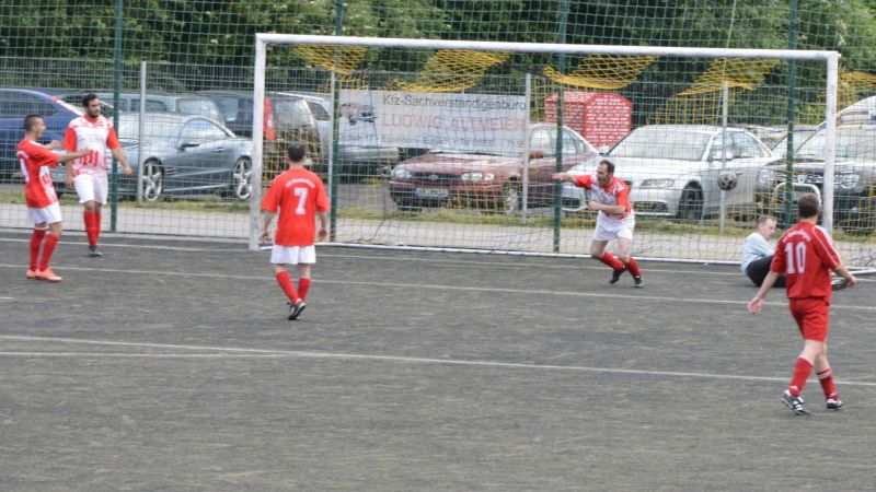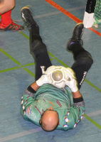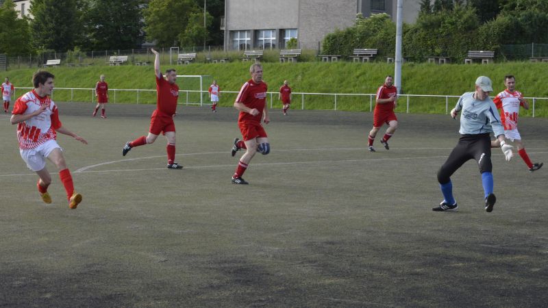 Mit einem vermeintlich schlagkräftigen Team gingen wir an den Start. Ohne gebührend auf die Defensive zu achten, konnte der Gegner 8 Tore erzielen, ehe Max den Anschlusstreffer setzte. Unser überforderter Torwart, Thomas „Die Katze“, hatte teilweise keine Chance das Team im Rennen zu halten.