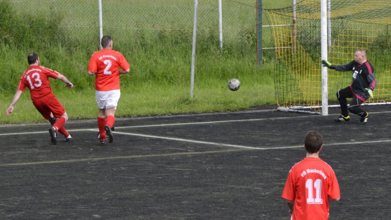 Die Macherbacher wurden verstärkt durch Mathias, Horst, Martin, Jens, Adam sowie Tobias im Tor. Sie begannen konzentriert. Sehr vorsichtig taktierten beide Teams am Anfang, so dass es bis zur 4. Minute brauchte bis Marpingen erstmals zum 0:1 traf. Keine zwei Minuten später konnte Adam für den VfB zum 1:1 ausgleichen. Aber ab jetzt fielen im Minutentakt Tore und unser Gegner führte zur Halbzeit mit 1:5.