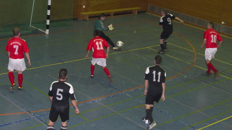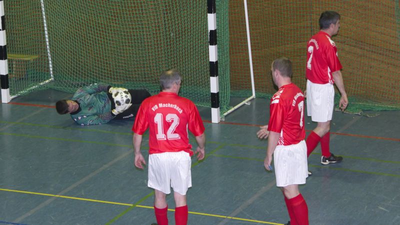 Nach dem Seitenwechsel setzte erneut die AH Marpingen den ersten Treffer zum 1:6 und erhöhte 4 Minuten später auf 1:7. Mit dem zweiten Tor für Macherbach überraschte Mathias die Marpinger. Der hallenerfahrene Gegner lies sauber den Ball laufen und konterte mit dem nächsten Treffer zum 2:8. Mathias war es erneut, der den Marpingern ein weiteres Tor zum 3:8 einlochte. Trotz der starken Leistung unseres neuen Torwarts Tobias konnten die weiteren Treffer zum 3:11 Endstand nicht verhindert werden.