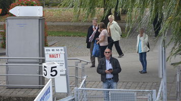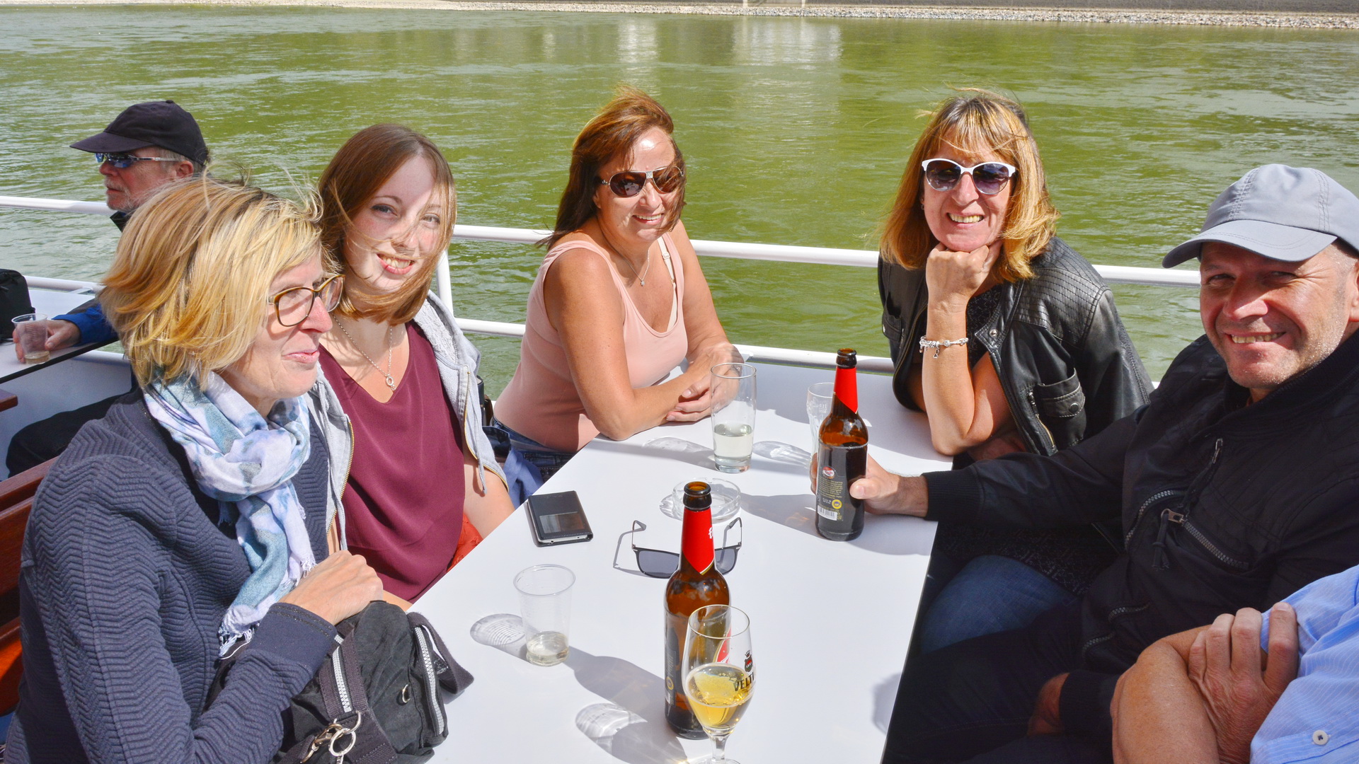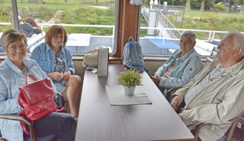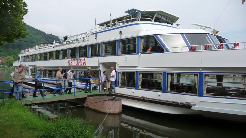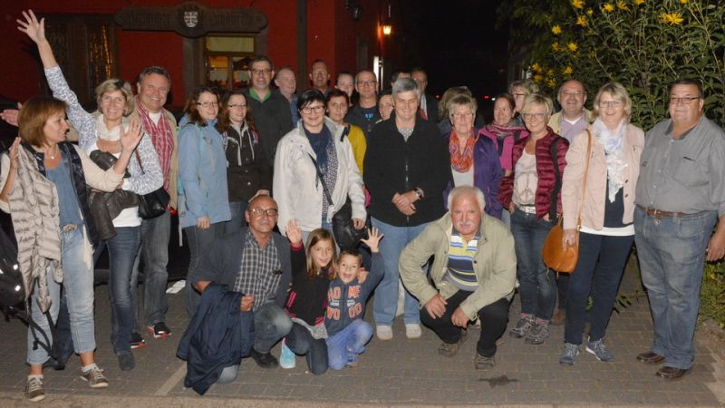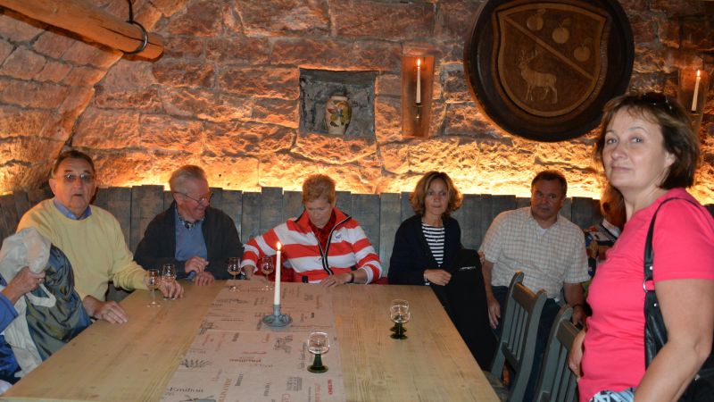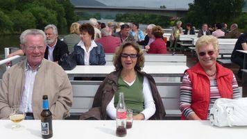 Kurz vor unserem Ziel kam es zum Highlight unseres Tagesausfluges. Thomas unser Reiseführer verließ eine Station zu früh das Schiff ohne seine Truppe zu informieren. Umso erstaunter war seine Reaktion, als das Schiff wieder ablegte und er winkend verabschiedet wurde. Es brauchte aber keine Stunde und wir hatten unseren Thomas wieder, so dass wir die geplante Weinprobe gemeinsam genießen konnten. Leider blieb nur wenig Zeit um die berühmte Drosselgasse zu besuchen oder gar die Gondelfahrt zum Niederwalddenkmal in Angriff zu nehmen. Unser Bus wartete bereits am gegenüberliegenden Ufer in Bingen, den wir nach der Fährüberfahrt direkt besteigen konnten. Sigi, unser Busfahrer brachte sicher den vollbesetzten Bus nach Macherbach zurück, wo wir gemeinsam bei einem Abendessen im Gasthaus "Zum Pflug" die Vereinsfahrt ausklingen ließen.