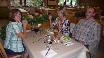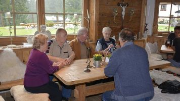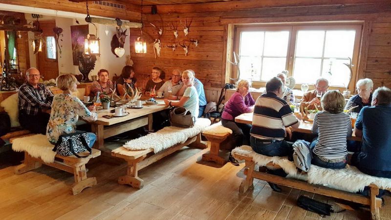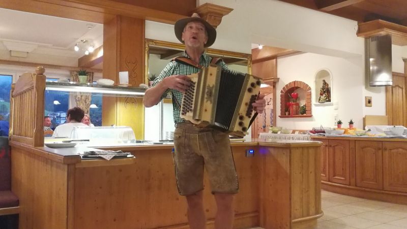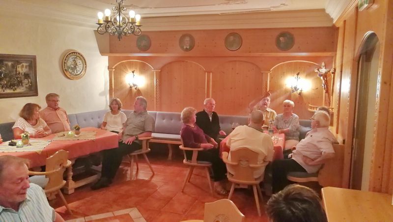 Mit einem Halt in Kufstein ging das geplante Programm weiter. Leider mussten wir die Besichtigung des Schliersees känzeln, da die Zufahrtstraße wegen eines Unfalls blockiert war. Dies tat der Stimmung keinen Abbruch, nutzten doch viele den Wellness-Bereich und das Hallenbad zur Entspannung oder ruhten sich für den anstehenden musikalischen Abend aus. Schon gegen Ende des 4 Gangmenus wurden wir von unserem lustigen Tiroler Original Joggei eingestimmt. Stets einen Witz auf den Lippen und mit gekonnter musikalischer und gesanglicher Leistung nahm er unsere Gruppe mit in die alten Zeiten. Er schaffte es, dass alle mitsangen oder zumindest mit diversen einfachen Instrumenten die musikalische Begleitung machten. Deshalb wurde es doch für die meisten ein langer und feucht fröhlicher Abend.