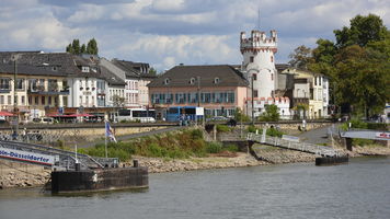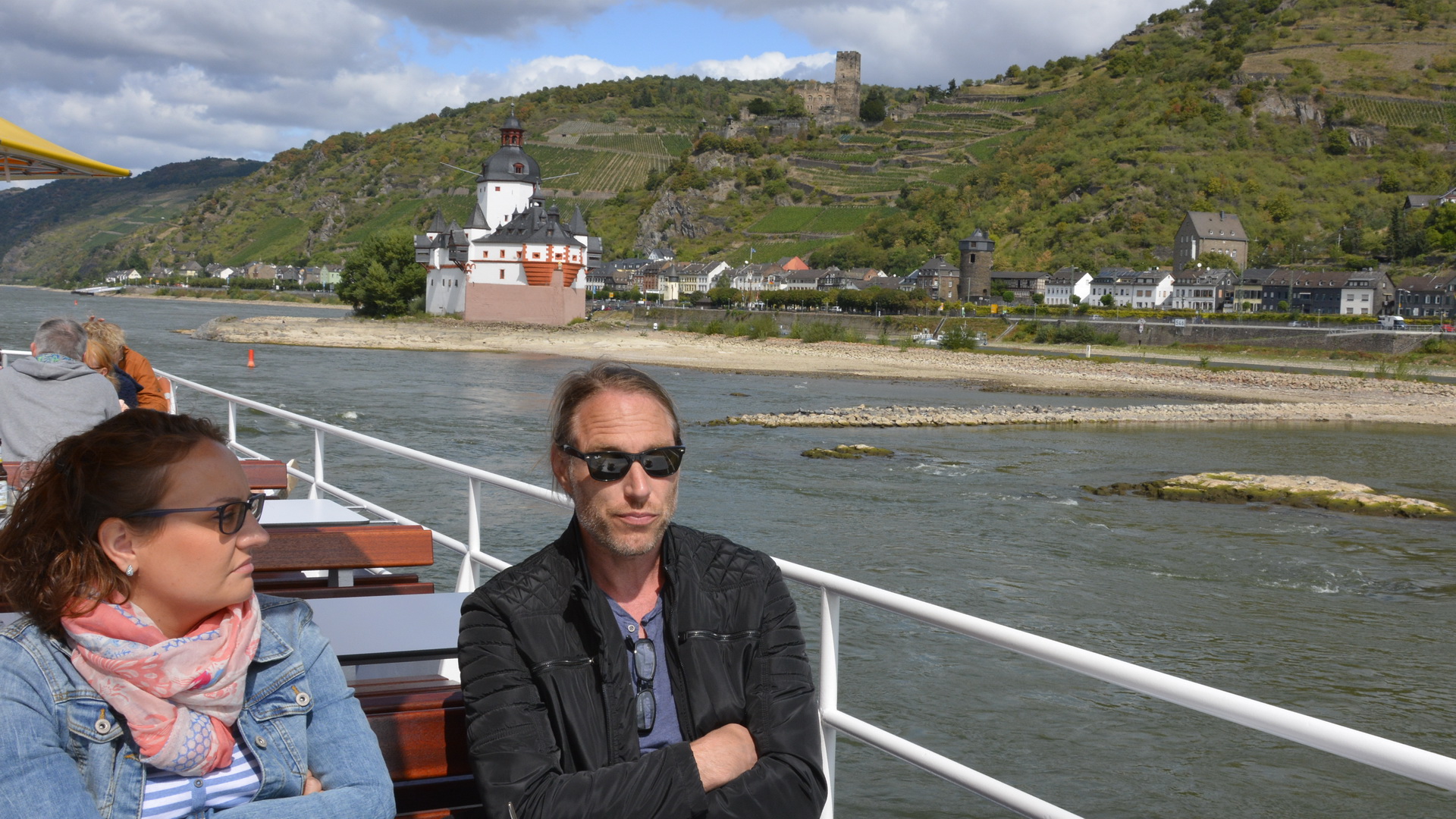 Wegen Niedrigwasser im Rhein bestiegen wir verspätet unser Schiff in St. Goar. Bei strahlendem Sonnenschein schipperten wir vorbei an der sagenumwobenen Loreley und an etlichen Burgen und verträumten Schlössern.