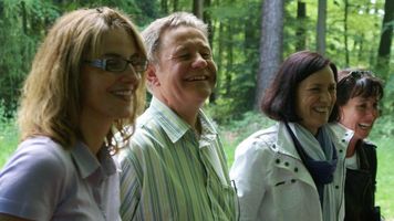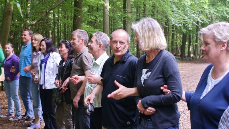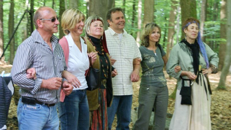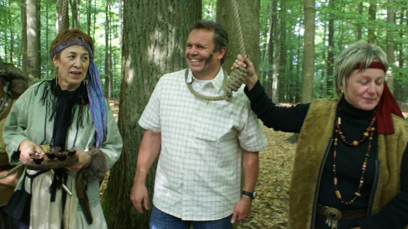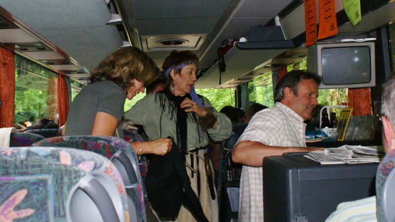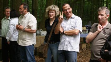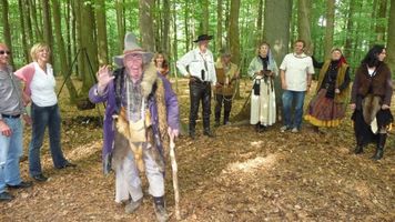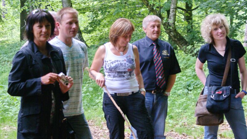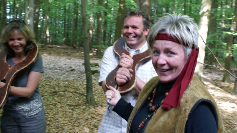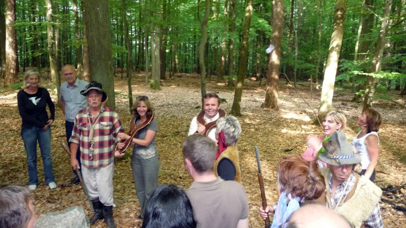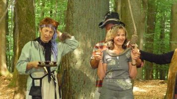 Noch vor der Ankunft in unserem Hotel in Weibersbrunn gerieten wir, auf dem Weg durch den dunklen Forst, mit samt unserem Bus in einen Hinterhalt. Die berüchtigten und zu allem entschlossenen Spessarträuber und Räuberinnen wollten nicht nur Wegezoll erpressen, nein sie veranstalteten eine regelrechte Henkersparty. Für Einzelne von unserer Truppe, die am Galgen enden sollten war dies vielleicht nicht so lustig. Denn nach dem eingeflößten Wahrheitssaft und der angedrohten Vergewaltigung wurden diese mit Unterstützung und lautem Beifallsgeheul der restlichen Mitreisenden eine Etage am Strang gehoben. Aber nicht genug mit zwei Opfern, so wurde mit nur einem gezielten Schuss die Ingrid von ihrem Michael befreit, da dieser mit seinen Bauernsprüchen den Räubern ständig Kontra gab. Danach blieb aber wirklich kein Auge und keine Kehle mehr trocken, als die sprücheklopfende und singende Räuberbande ihren Apfelwein verteilten und Beates kleine Fledermaus besangen. Einigen von uns viel es schwer das Räuberquartier zu verlassen, da diese von den blonden und vor allem schwarzhaarigen rassigen Räubersleut verhext wurden.