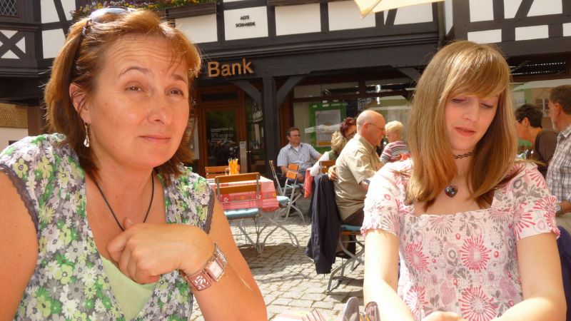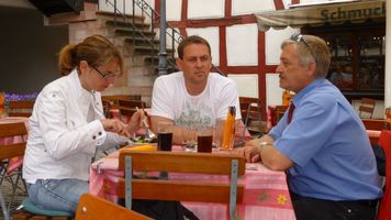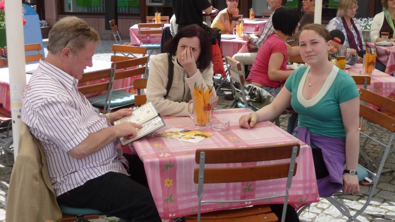 Unser letztes Ziel, Michelstadt im Odenwald mit seinen Fachwerkbauten und gemütlichen Altstadtplätzen lud zum Verweilen und Erfrischen in praller Mittagssonne oder unter schattenspendenden Sonnenschirmen ein, bevor wir den Heimweg antreten mussten.