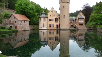 Eine kurze Busfahrt führte uns dann weiter nach Mespelbrunn. Hier besichtigten wir das versteckte aber bestens bekannte und noch bewohnte Wasserschloss, welches für etliche Filme als Kulisse diente, unter anderem für den Film „Das Wirtshaus im Spessart“.
