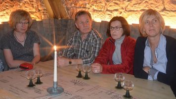 Bei der Zimmeraufteilung kamen doch alle ins Schmunzeln. Denn ob Hexen-, Kuschel- Hasen- oder Hochzeitszimmer, jeder dieser Zimmer hatte seine Dekoration und war hübsch gestaltet. Obwohl mittlerweile auch die Sonne sich blicken ließ, konnten wir die geplante Planwagenfahrt wegen den aufgeweichten Feldwegen nicht durchführen. Die dafür lustige singende und klingende Weinprobe entschädigte uns. Trotzdem waren einige unserer Helden nicht vollständig ausgelastet und so wurden noch ein paar Runden auf den hoteleigenen Kegelbahnen gespielt. Hier zeigten sich die Kegelperfektionisten, so dass unser Kegelfreund Thomas nur noch große Augen machen konnte.