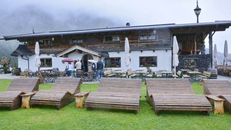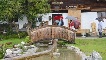 Nach dem ausgiebigen Abendessen ließen wir auf der Terrasse den Abend ausklingen bevor uns der ganz plötzlich einsetzende tropische Sturm ins Haus trieb. Ausgeschlafen und fürstlich gestärkt am Frühstücksbuffet war unser erstes Ziel am Samstag, das Haus des Bergdoktors in Elmau.