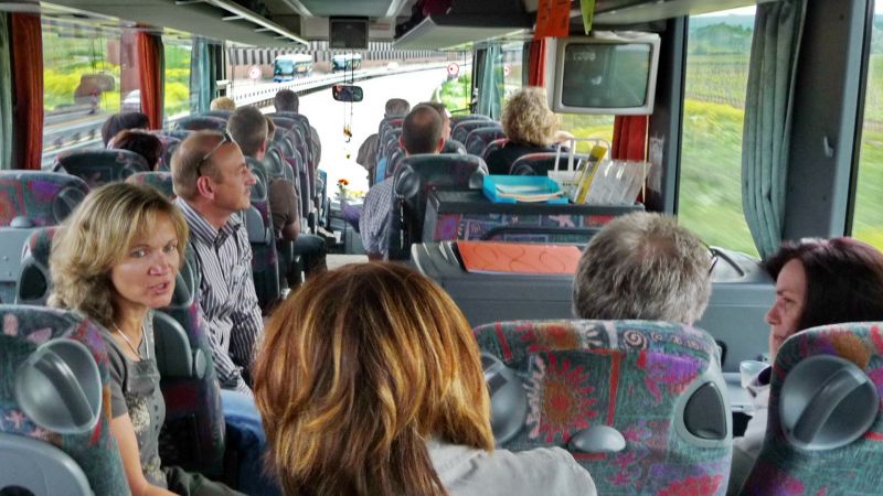 Der Wettergott hatte während der gesamten Reise ein Einsehen, so dass wir die Regenschirme nicht wirklich benutzen mussten. Erst zum Reiseschluss, als wir die Grenze zum Saarland passierten, öffnete der Himmel seine Schleusen, deshalb kam auch nicht jeder trockenen Fußes nach Hause.