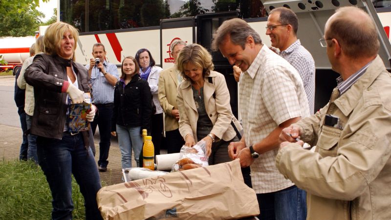 Auf der Hinfahrt wollten wir natürlich nicht auf unser VfB-Frühstück verzichten, welches von Rita organisiert wurde. Wohl gestärkt erreichten wir am frühen Mittag die Stadt Köln.