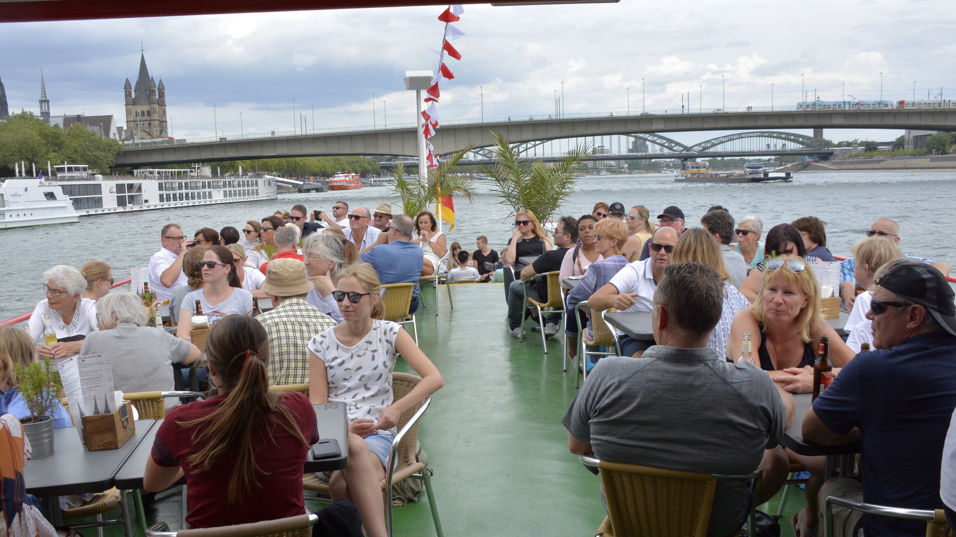 Dort enterten wir das vorgebuchte Panoramaschiff, das uns die Rheinseite Kölns zeigte und wir erhielten interessante Infos über die Stadt und seine Geschichte.