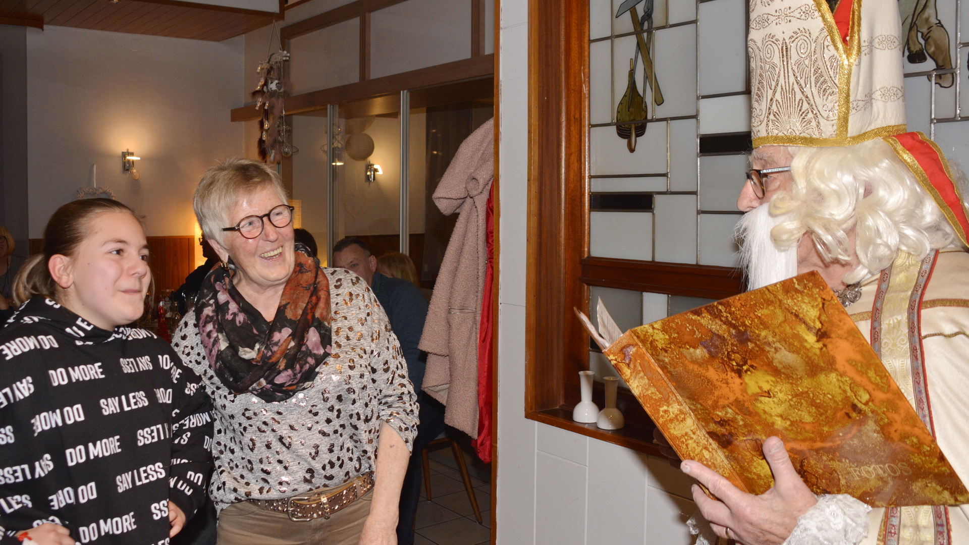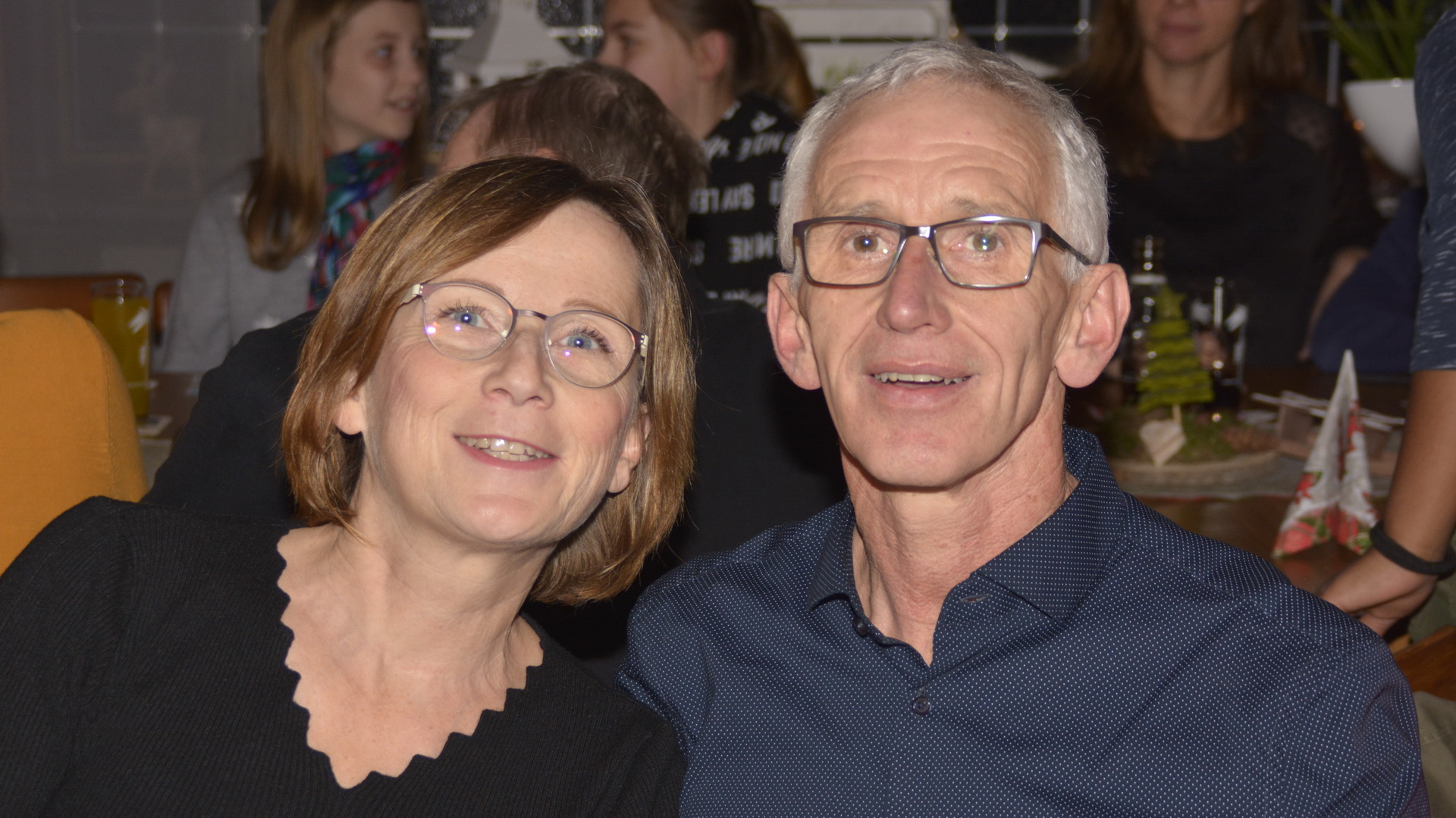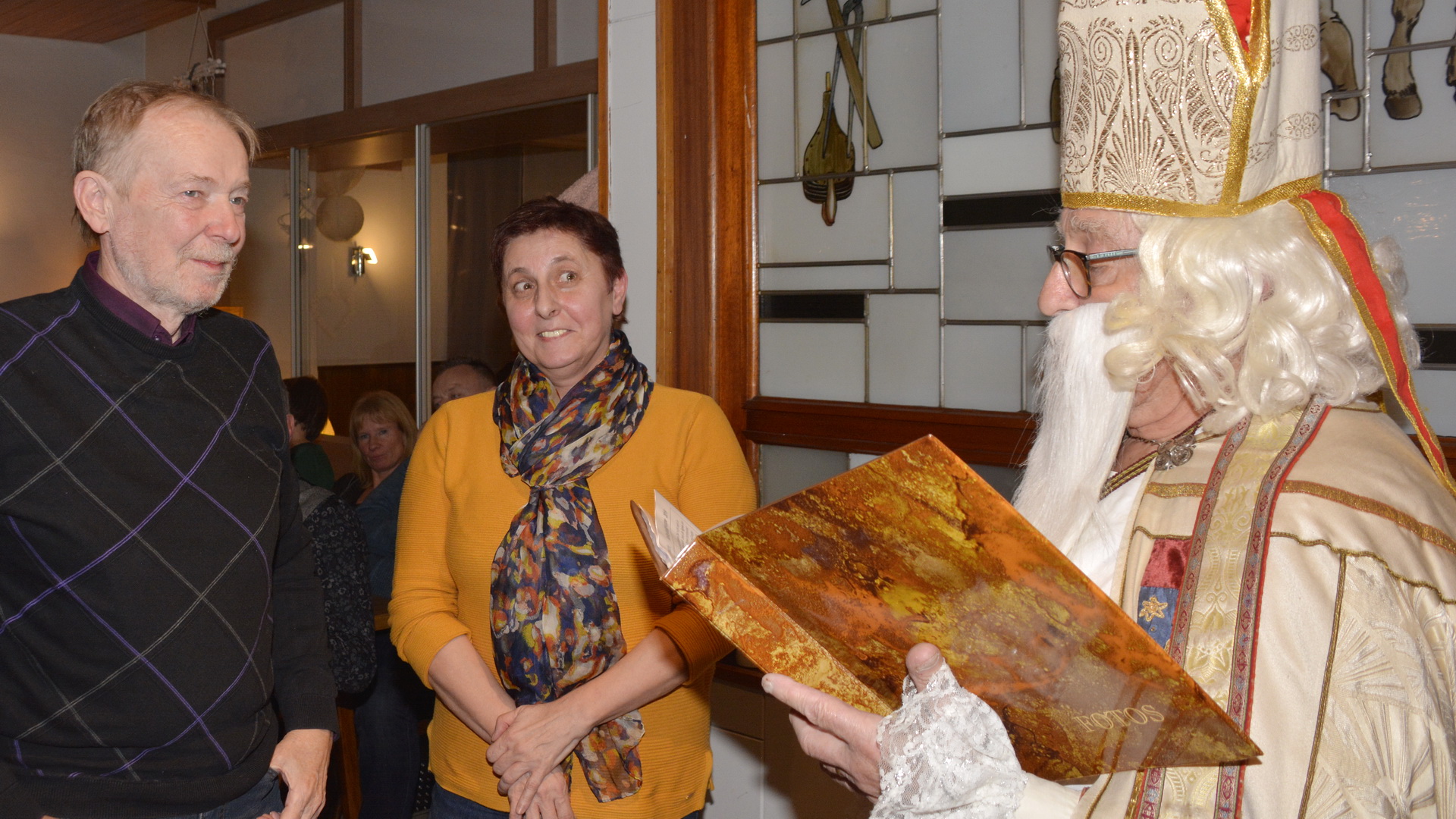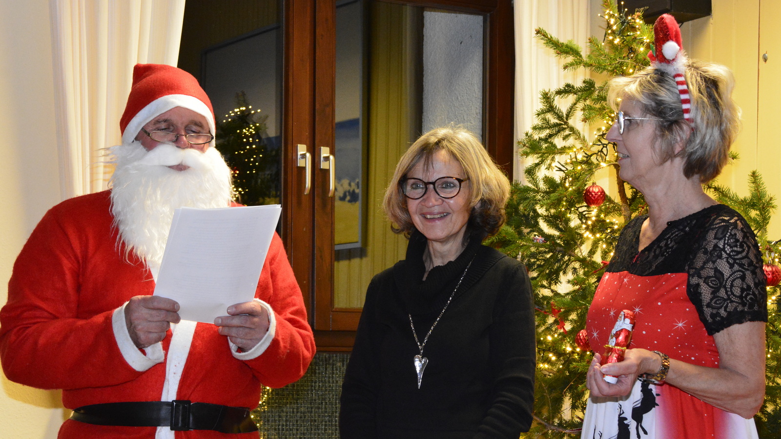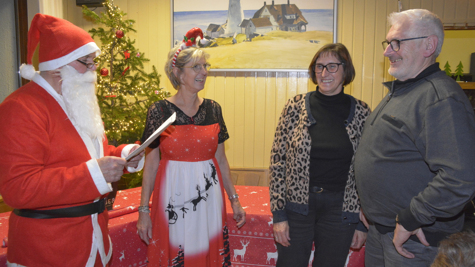 Zu der anschließenden Weihnachtsfeier hatte sich auch Santa Claus mit weiblicher Begleitung angekündigt. Sie ließen aber der Truppe Zeit um sich vorab zu stärken. Natürlich kamen sie dann auch nicht mit leeren Händen. Aus seinen Notizen stellte der Nikolaus die kleinen und großen Mängel, wie auch die positiven Ereignisse der einzelnen Spieler in den Vordergrund. Tolle Preise konnte man bei der Tombola gewinnen, die Rita und Thomas vorbereitet hatten. Unser Herbert hatte das Vereinsgeschehen der letzten 40 Vereinsjahre in einer sehr gelungenen Foto- und Dia-Show mit Hilfe von Kathrin auf die Leinwand gezaubert. Folglich wurde viel gelacht und noch lange in den Abend hineingefeiert.