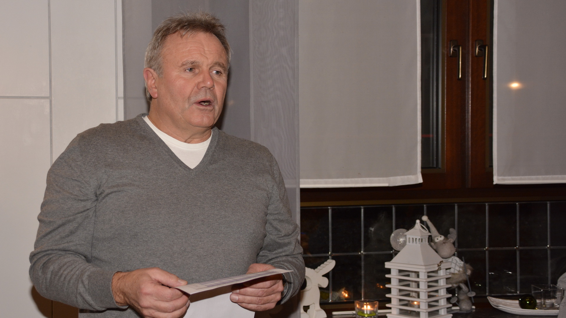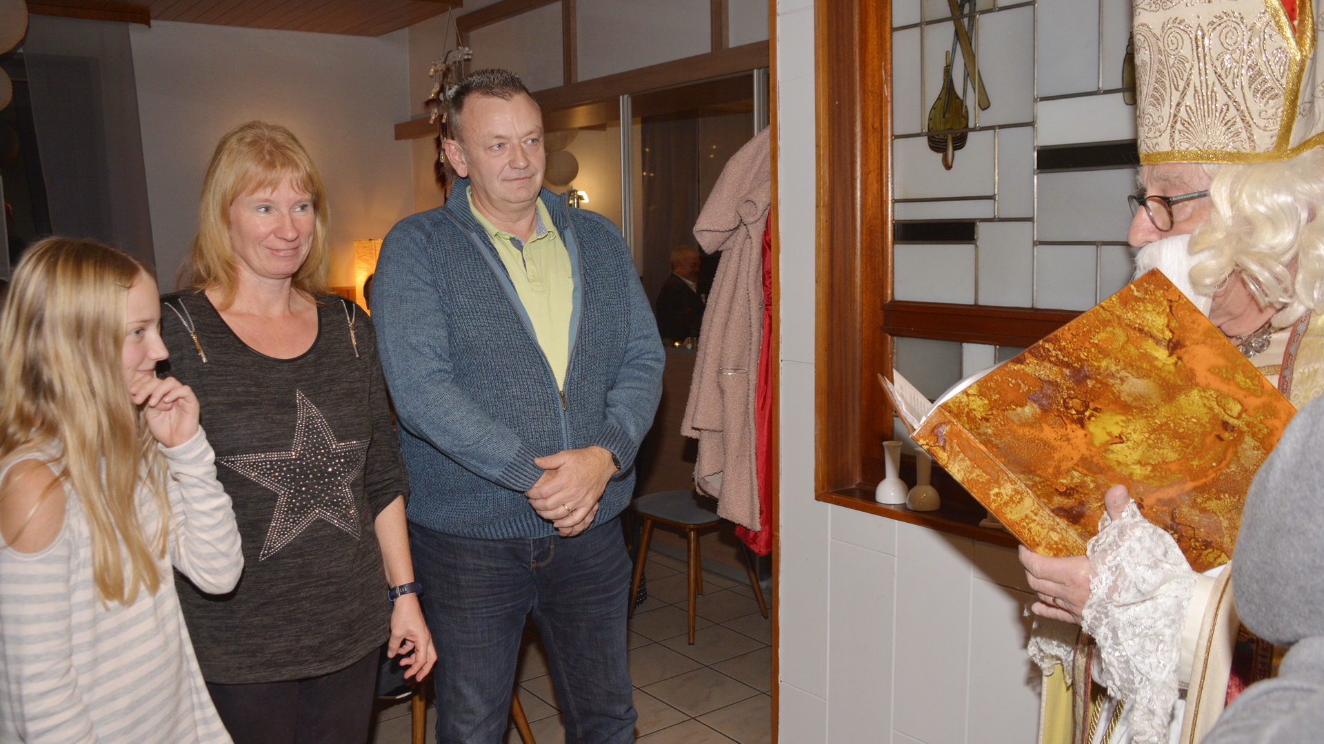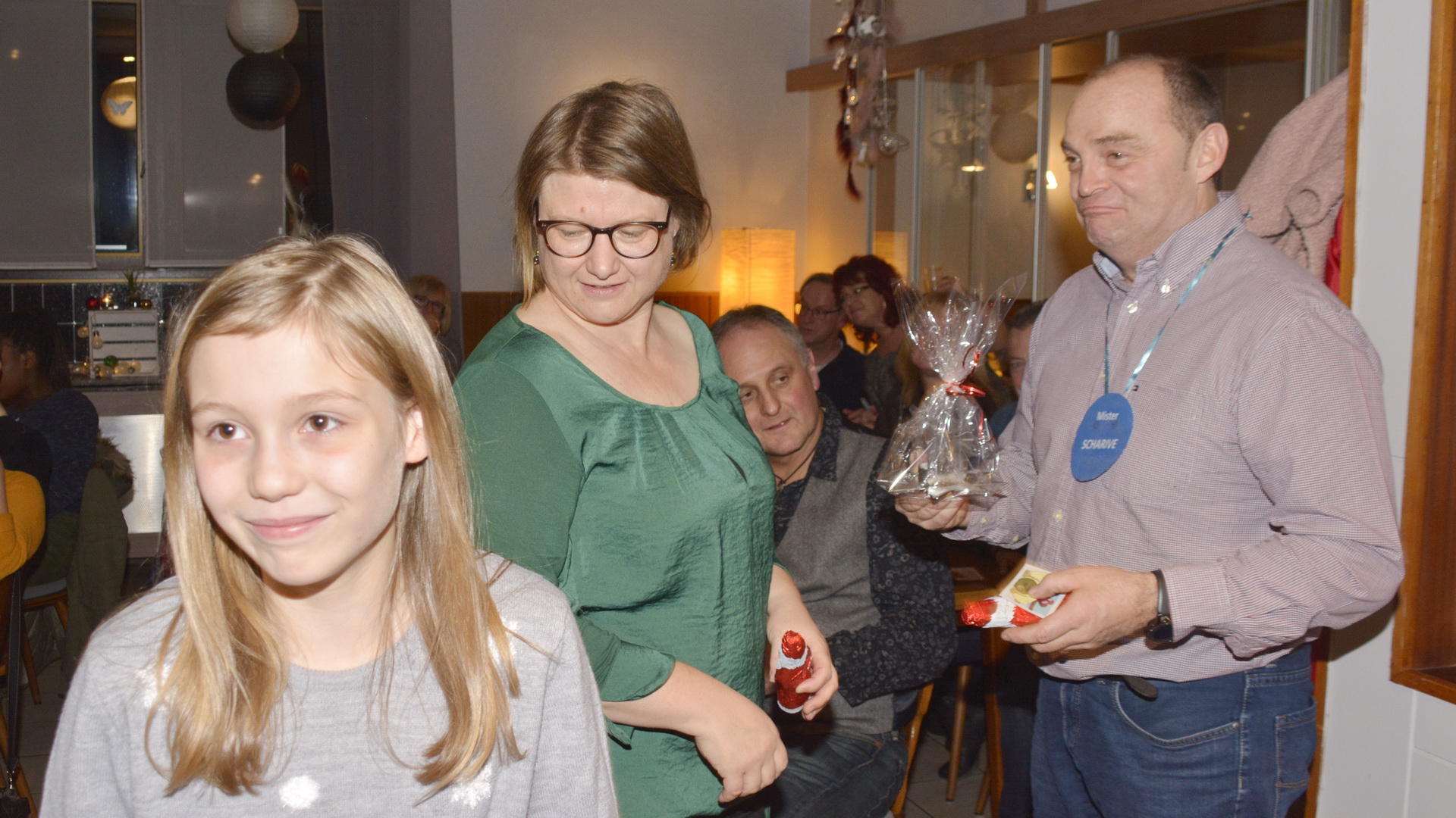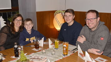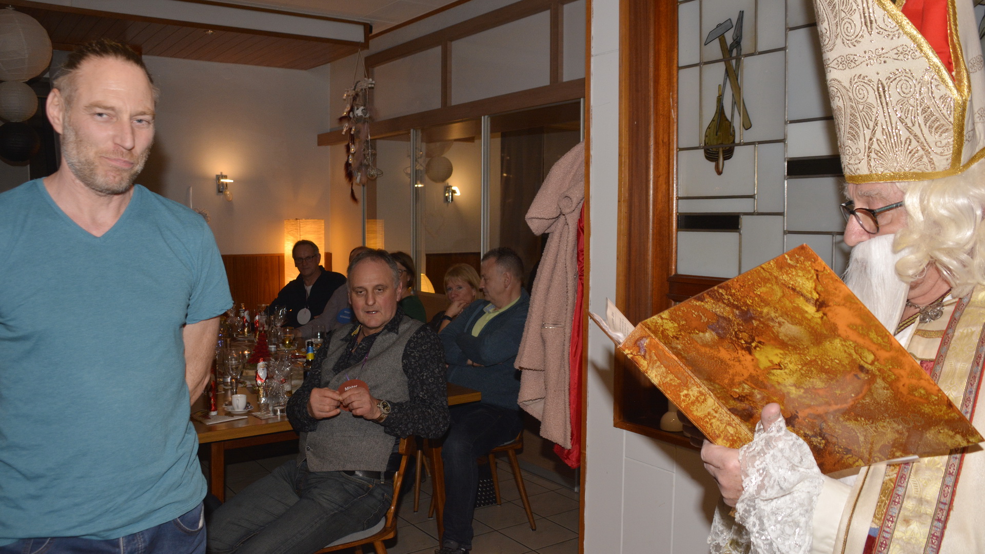 Zu der anschließenden Weihnachtsfeier hatte sich auch der Nikolaus angekündigt. Er ließ aber der Truppe die Zeit um sich vorab zu stärken. Natürlich kam er dann auch nicht mit leeren Händen. Neben dem obligatorischen Schokoweihnachtsmann erhielt jedes Familienteam ein toll gestaltetes Weihnachtslicht aus der Edelstahlschmiede von Thomas, bei dem wir uns an dieser Stelle recht herzlich bedanken. Aber unser Nikolaus hatte die kleinen und großen Mängel, wie auch die positiven Ereignisse zu den einzelnen Spielern, in seinem goldenen Buch festgehalten. Folglich wurde viel gelacht und noch lange in den Abend hineingefeiert.
